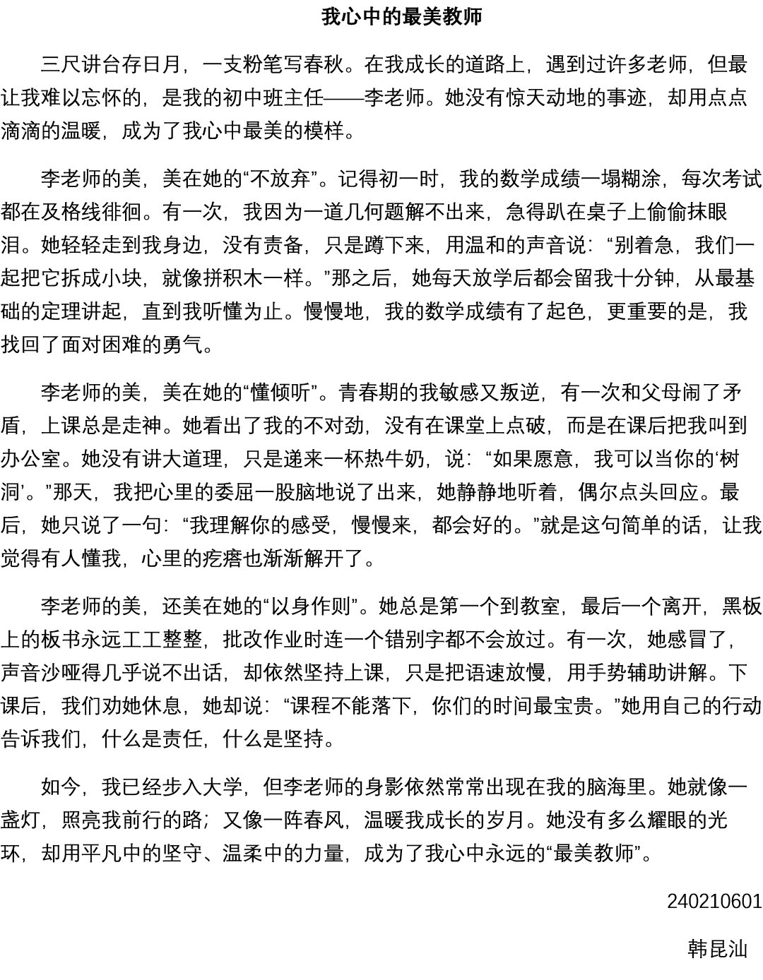 我心中的最美教师 韩昆汕