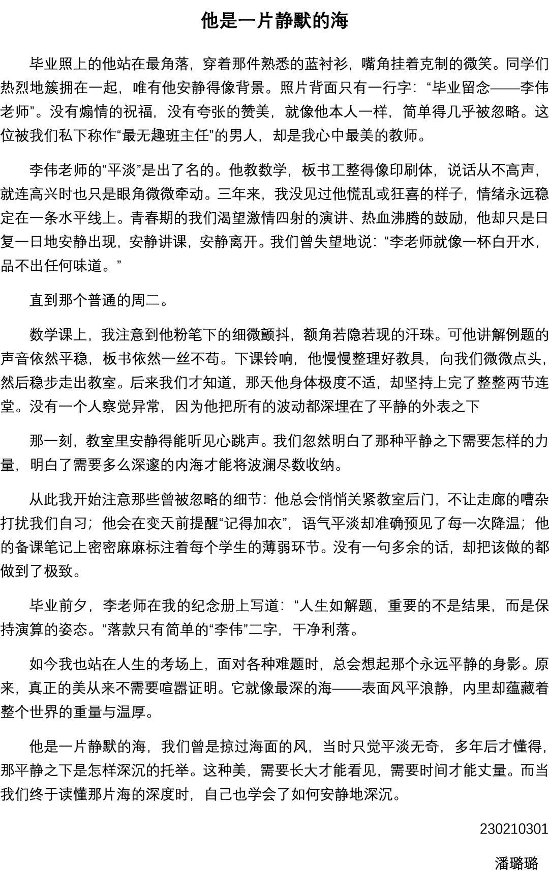 他是一片静默的 潘璐璐