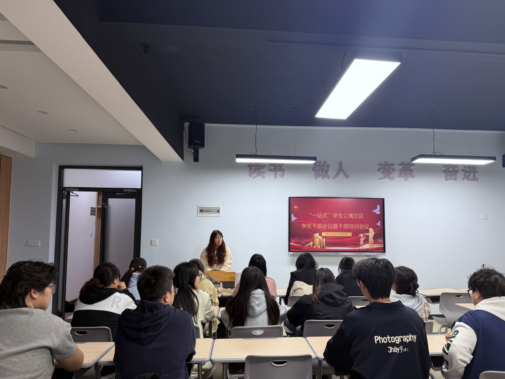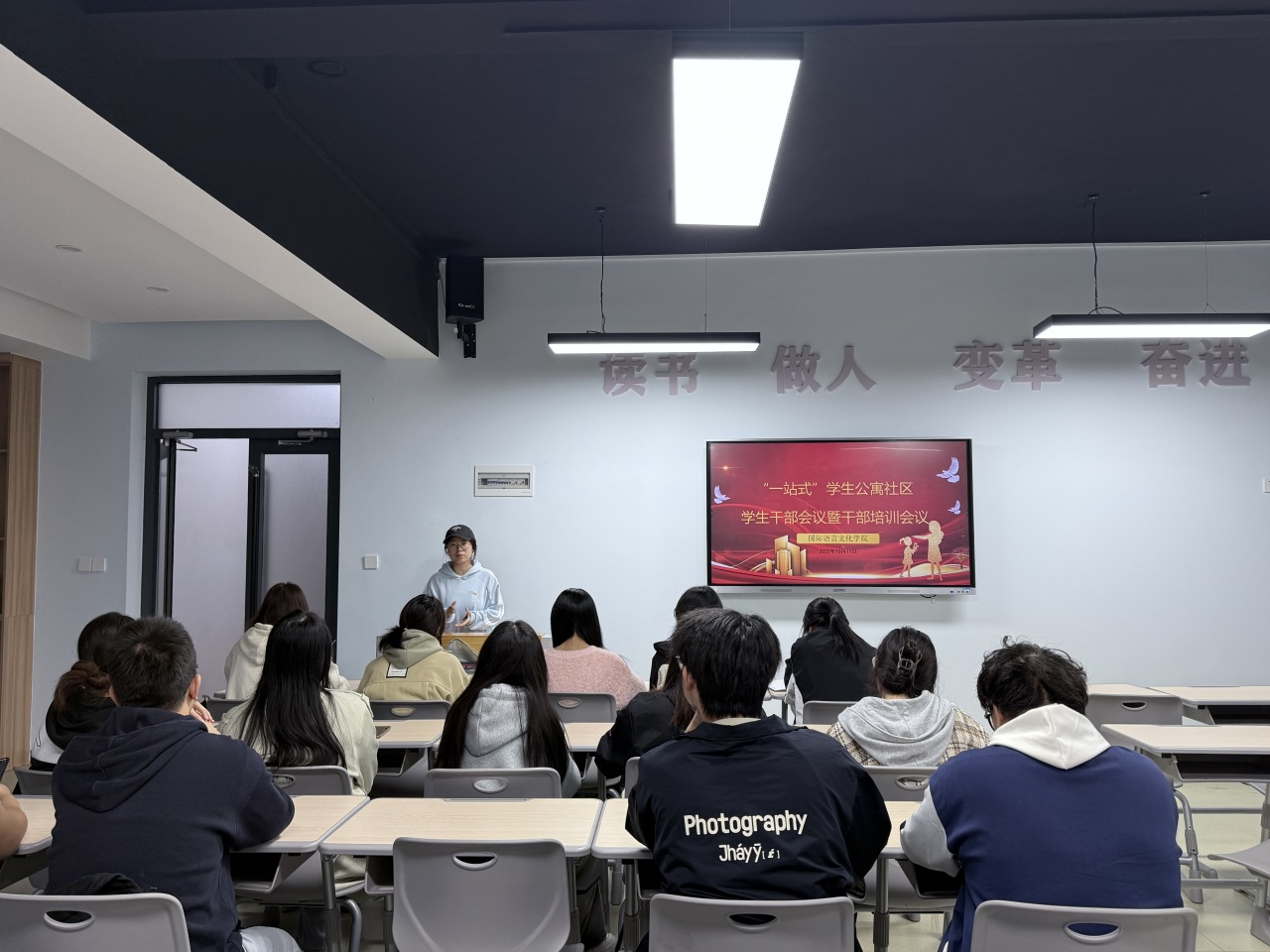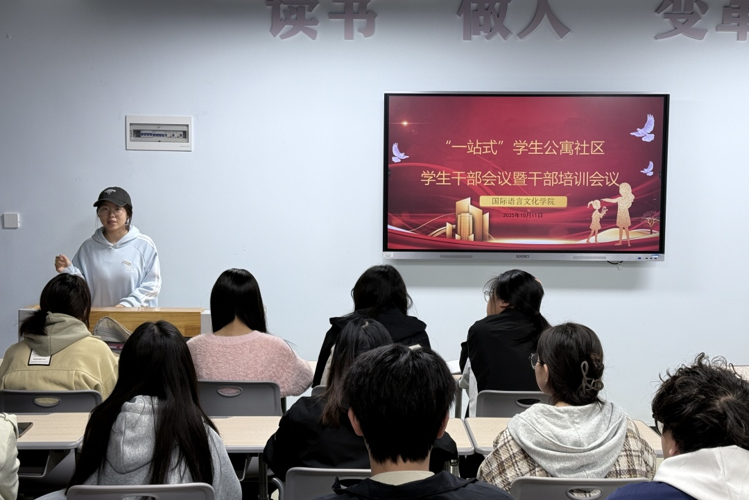 为进一步强化“一站式”学生公寓社区的育人能力,提升学生干部的服务能力与责任意识,2025年10月11日,国际语言文化学院团总支“一站式”学生公寓社区学生干部会议暨干部培训会议在三号楼3120创咖顺利召开。团总支全体学生干部齐聚一堂,共话服务、同研成长。