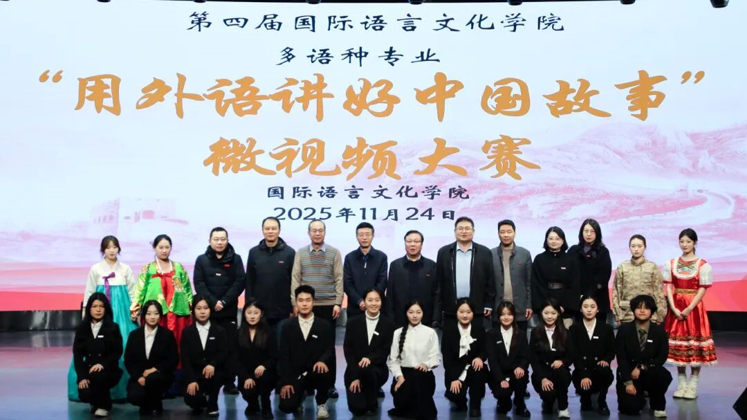 用外语传承文化,以镜头抒写“西译”。国际语言文化学院于2025年11月24日15:00在东区演播大厅举办第四届国际语言文化学院多语种专业“用外语讲好中国故事”微视频大赛决赛。各晋级队伍以“我眼中的西译”为叙事窗口,用多语种的专业素养与镜头的美学表达,将校园生活的真实图景,升华为一幅当代中国的生动缩影。这既是对语言能力的锤炼,更是一次青年视角与中国叙事深度融合的生动实践。