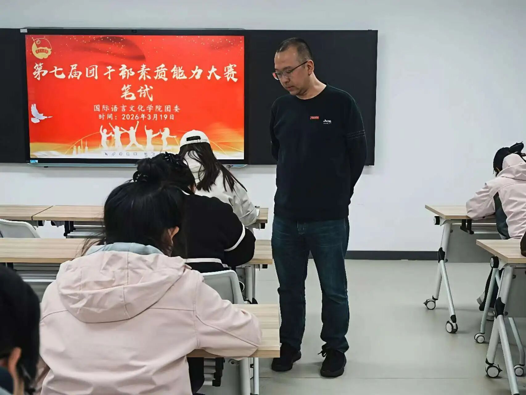 为深入学习贯彻习近平新时代中国特色社会主义思想,深入贯彻党的二十大和二十届历次全会精神,深入贯彻习近平总书记关于青年工作的重要思想,扎实推进学院共青团干部队伍建设,切实提升团干部的理论素养和业务能力,国际语言文化学院团委于3月19日下午,在3119教室成功举办了第七届团干部素质能力大赛笔试环节。