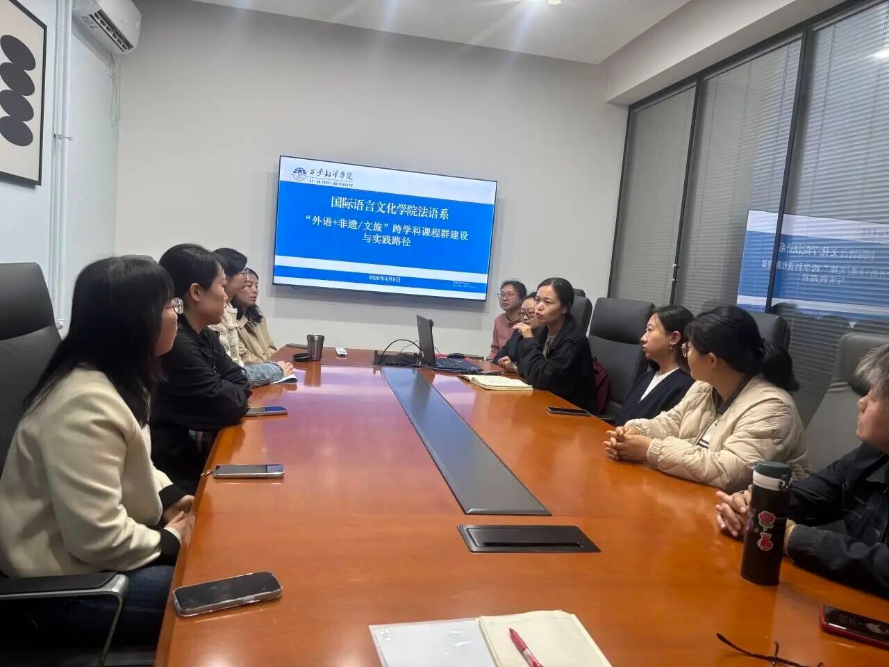 为切实深入贯彻落实新文科建设要求,推动学校实现转型发展,深化应用型人才培养模式改革,4月8日,我院日语、德语、法语、西班牙语、朝鲜语及俄语六个专业教研室同步开展了以“‘外语 + 非遗/文旅’跨学科课程群建设与实践路径”为主题的专题教研活动。